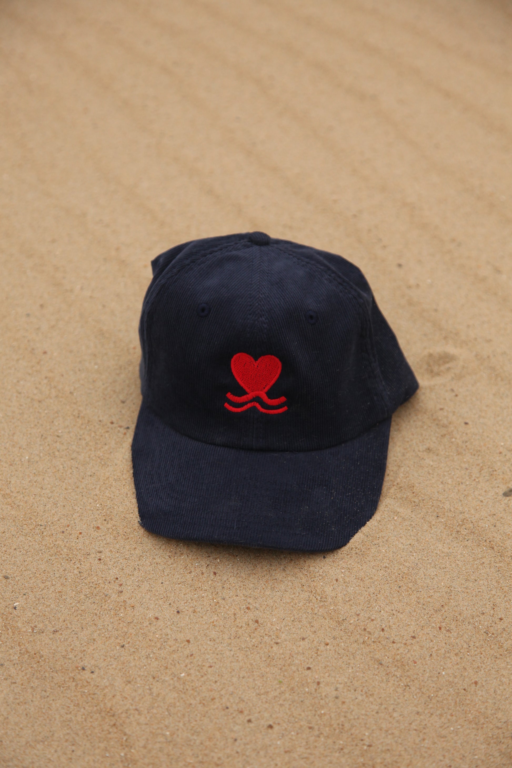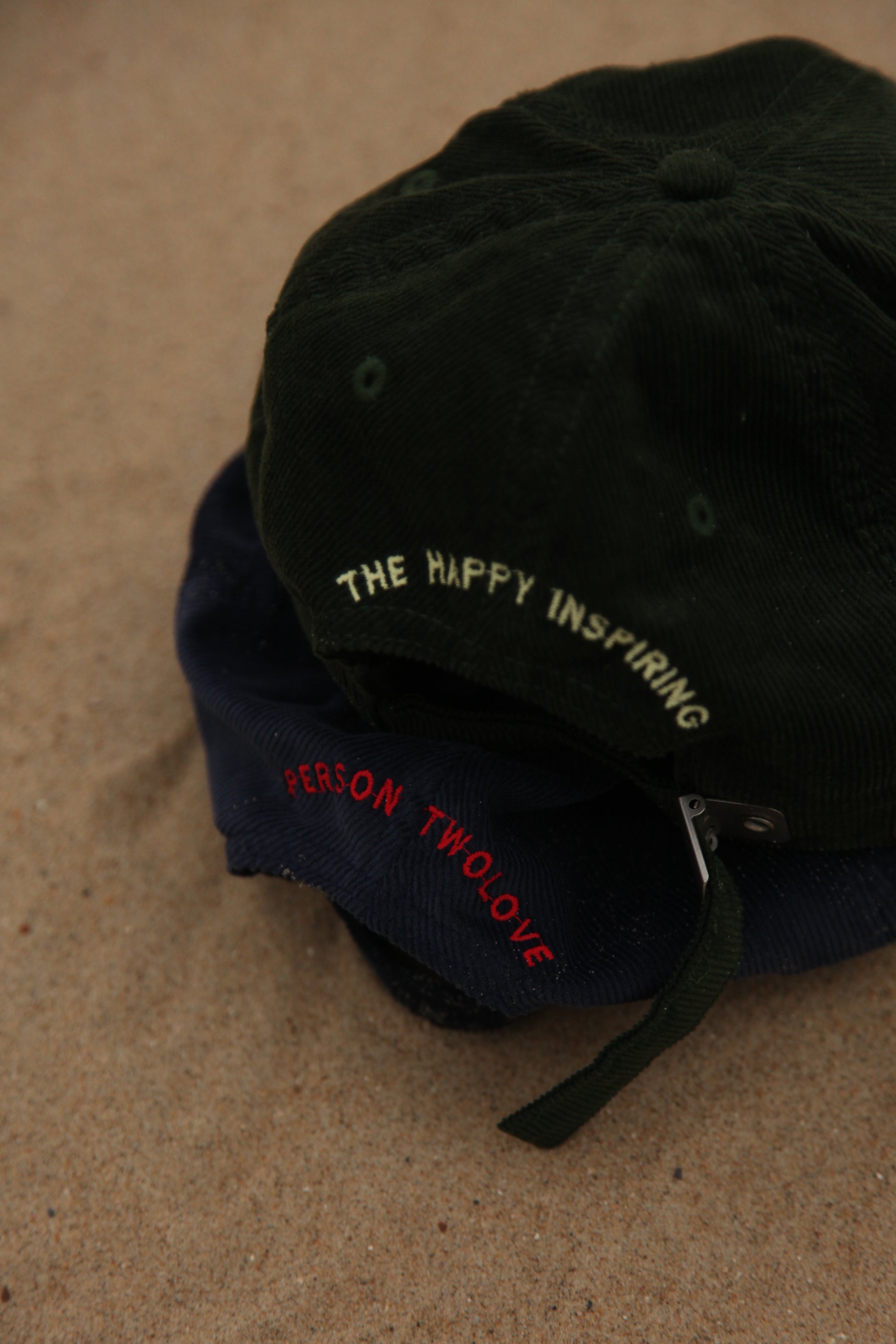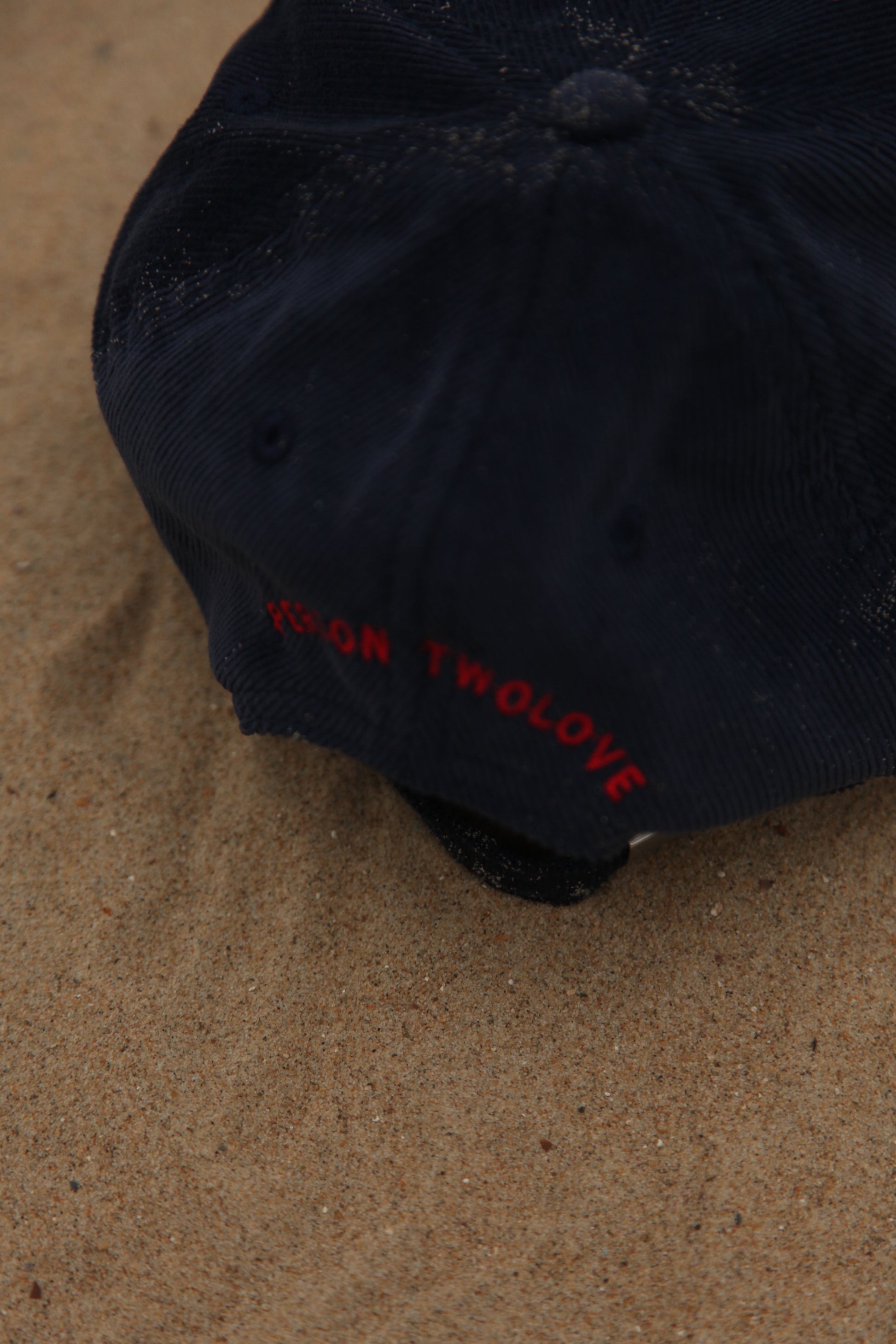 Dark Blue Corduroy Cap with "Person Twolove" Red Embroidery